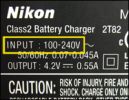 In the above Nikon label you can see the INPUT: 110-240V clearly marked. Also you can see it is ok with 50/60Hz. The square within a square mid right is the double insulated symbol so this device will almost certainly have just 2 pins.